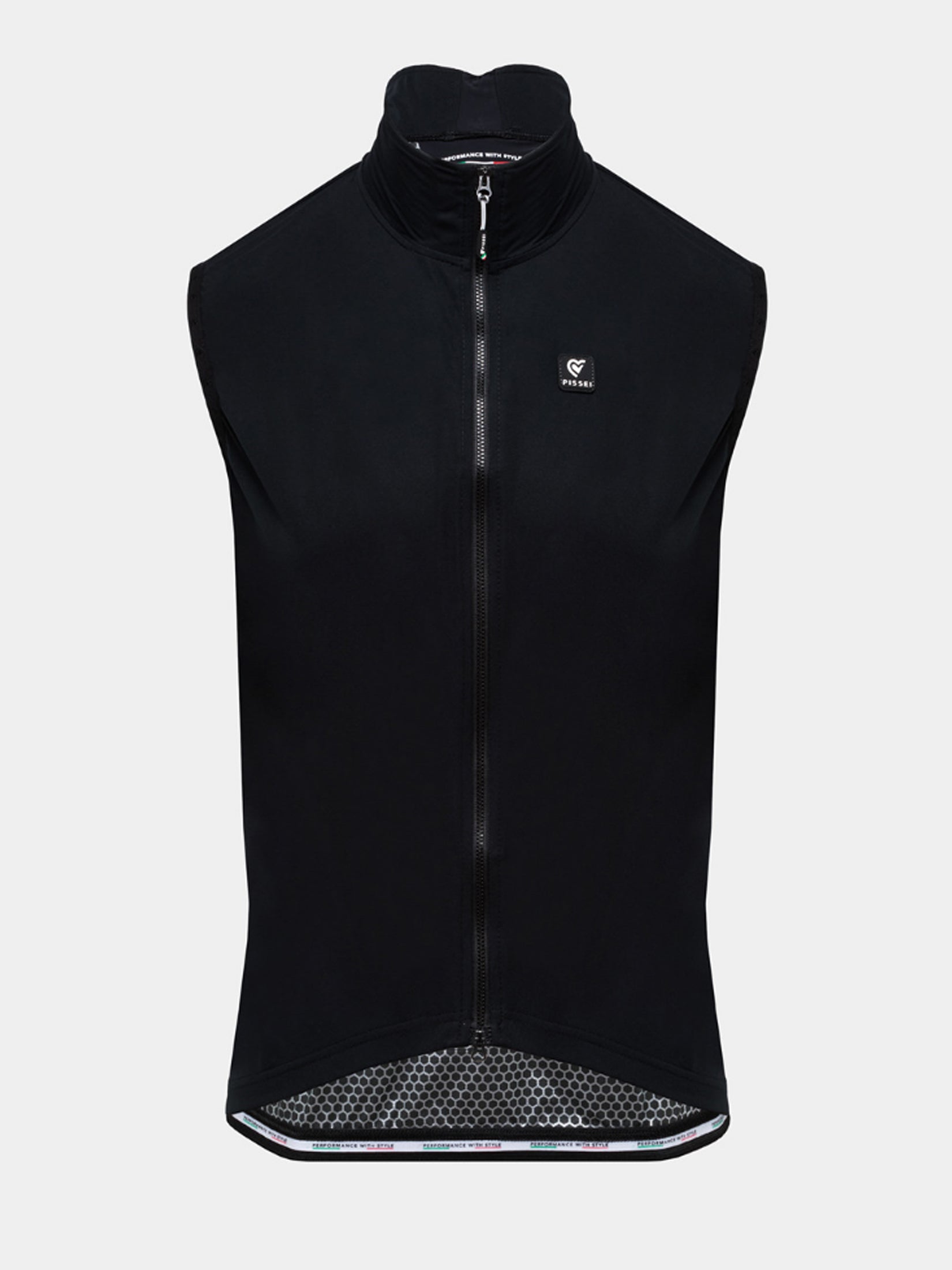 Lightshell thermal membrane paired with soft-touch bi-directional fabric provides a close race type fit. panel construction allows easy access to jersey pockets with a slit-style access panel. High visibility pixel technology is used on the rear of the gilet to provide extreme visibility in poor light conditions.